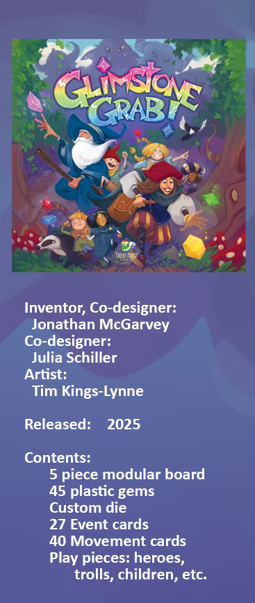 Glimstone Grab is set in the magical universe of our bestselling game, Hoard. Esmeralda and her friend, Wizard Widdershins, must save the town of Much Middling from a clutch of rapacious trolls who have settled into a clearing in the forest, where they are helping themselves not just to the gems, but the local children!