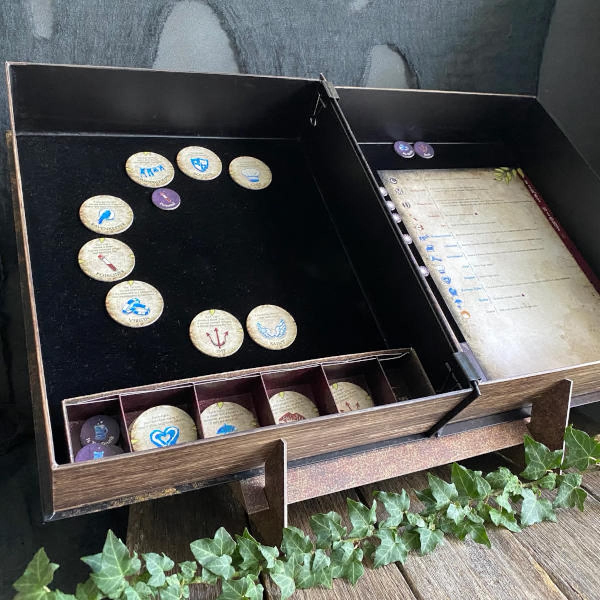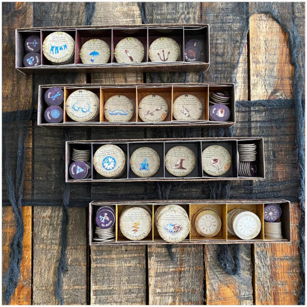 The Storyteller uses the game's intricate playing pieces to guide each game, leaving others free to play without a table or board. Players stay in the thick of the action to the very end even if their characters are killed, haunting Ravenswood Bluff as ghosts trying to win from beyond the grave.