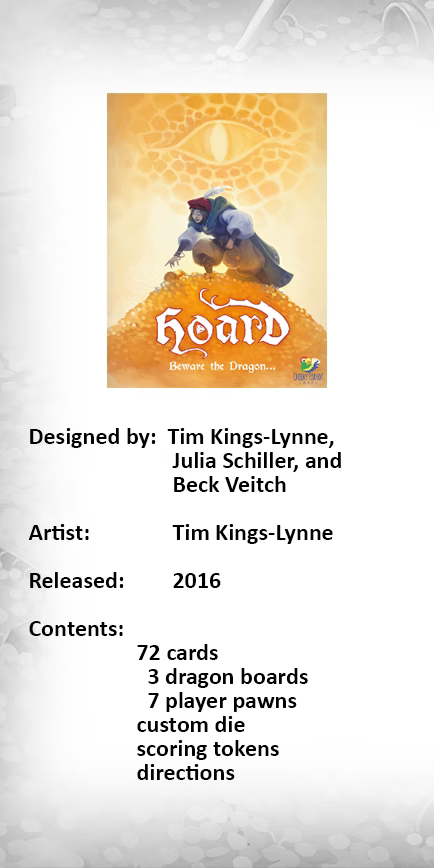 Creep around the dragon, collecting treasure sets; steal from other players at sword-point; remember the best caches; and when you feel you're ahead, try to rouse the beast to bring the round to an end.