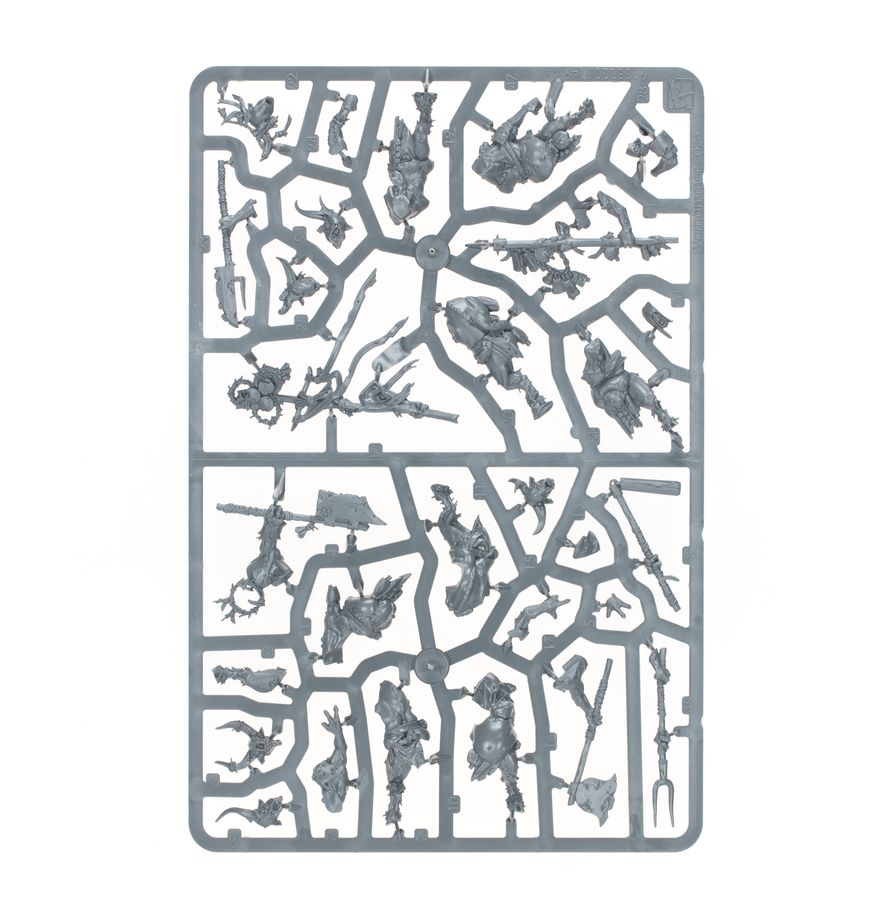 This multipart plastic kit builds 10 Pestigors, diseased beastmen for your Maggotkin of Nurgle armies in games of Warhammer Age of Sigmar. These bloated, rotting creatures are ready to march at the forefront of your army, shrugging off blows and getting to grips with their enemies so they can wreak havoc with their corroded weapons. The kit includes parts to build an optional champion, standard bearer, and musician, offering a degree of customisation to your unit.