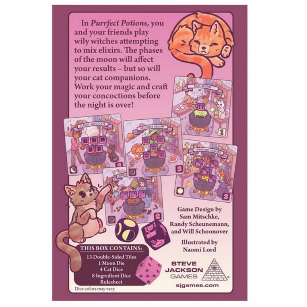 Purrfect Potions is a strategic card game where players compete to brew magical concoctions. In this enchanting game, feline assistants help with the brewing, but they are unpredictable and follow the whims of the moon rather than player commands. Combining whimsical witch-themed gameplay with tactical decision-making, Purrfect Potions offers an experience that is quick to learn but provides depth for repeated play.